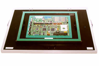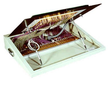 Vacuumcassette ist schwenkbar auf Pultgehäuse montiert. Schnittstelle und Vacuumanschluß sind systemspezifisch in der Bodenplatte montiert.